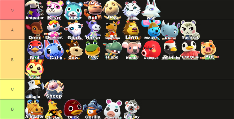 What S Your Villager Species Tier List The Bell Tree Animal Crossing Forums